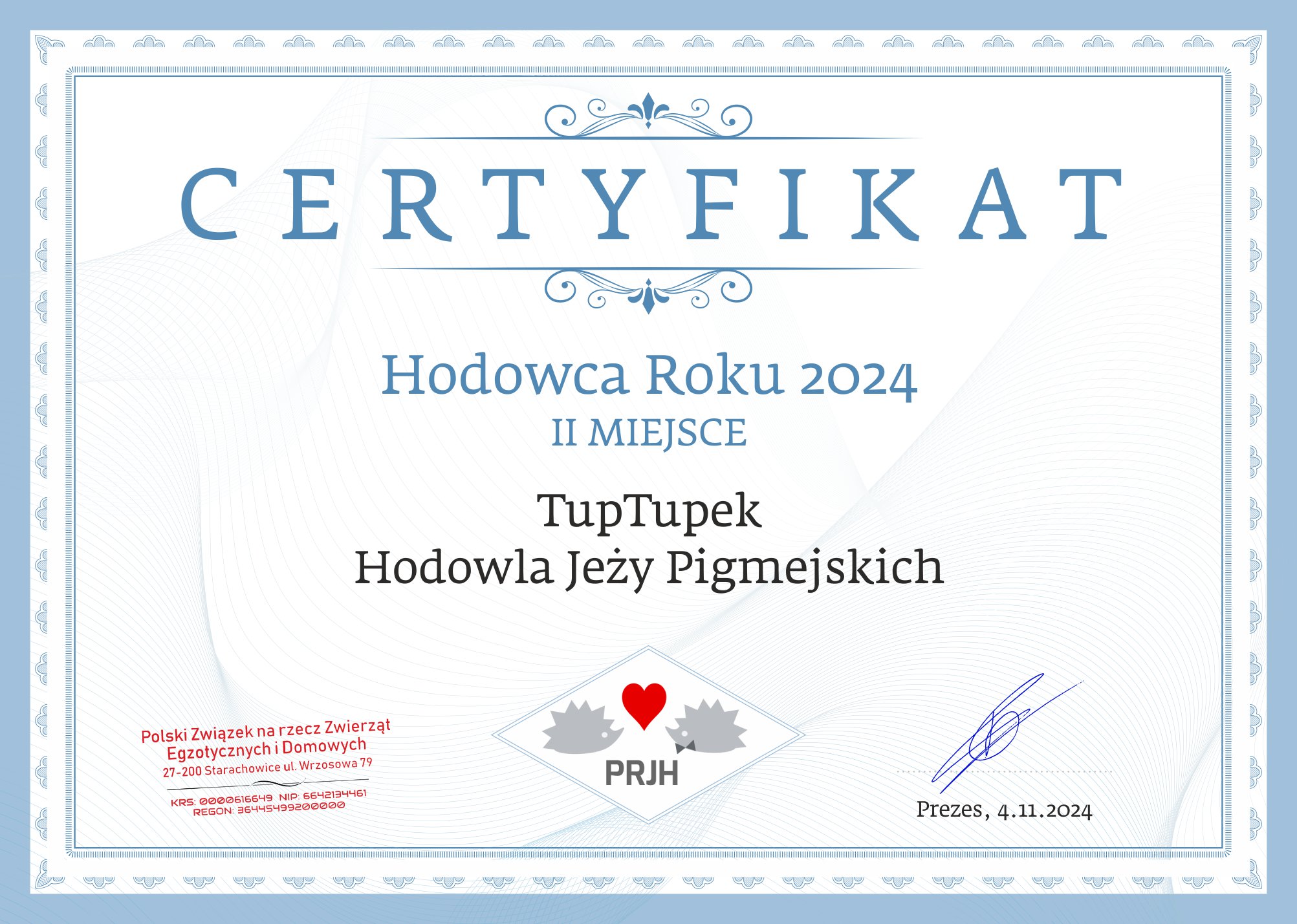 Jesteśmy członkiem Polskiego Związku na Rzecz Zwierząt Egzotycznych i Domowych.